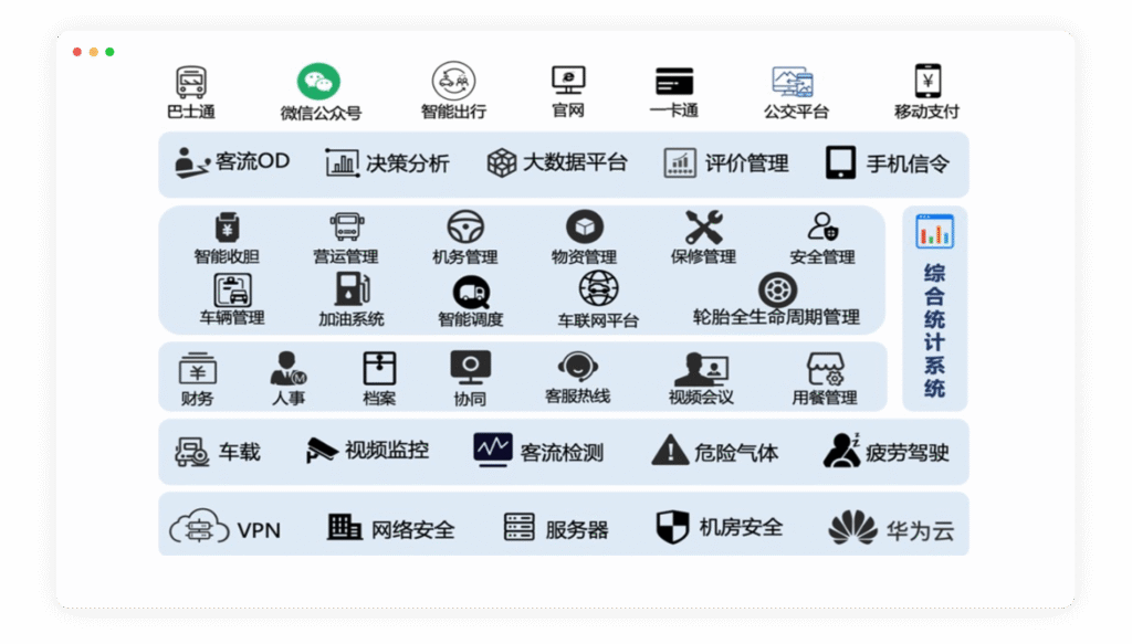 业务流程规范化:规范化、标准化开展企业经营管理,通过信息化手段实现业务流程在线,全面管理过程信息,确保信息可查可溯。 加强多系统协同:有效链接企业内业务系统,强化多系统协同,打通数据通路,业务闭环管理,推动管理措施强效落地,提升集团经营管理效率。评价管理数智化:评价标准具象化,精准、规范的记录各线路考核情况,考评标准及时下达,数据精准统计分析,实现企业评价数据化、可视化、智能化管理。集团管理智能化:依托集团公交数据中台,全面汇集多终端、多系统数据,实现智慧调度、智慧出行、车联网等建设目标,助力企业智能化管理。