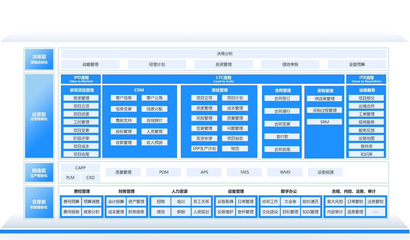 Tale piattaforma mira a rompere i silos informativi all’interno delle aziende e tra i partner a monte e a valle della catena di valore, realizzando una coordinazione altamente efficiente e l’ottimizzazione dell’allocazione delle risorse nelle fasi di R&D, produzione, supply chain, vendite e servizi. Migliorando la velocità complessiva di risposta e la capacità di produzione flessibile (lean manufacturing), contribuisce allo sviluppo delle imprese manifatturiere verso l’intelligenza, la servitizzazione e la sostenibilità ecologica, e rafforzando la loro competitività essenziale sul mercato globale.