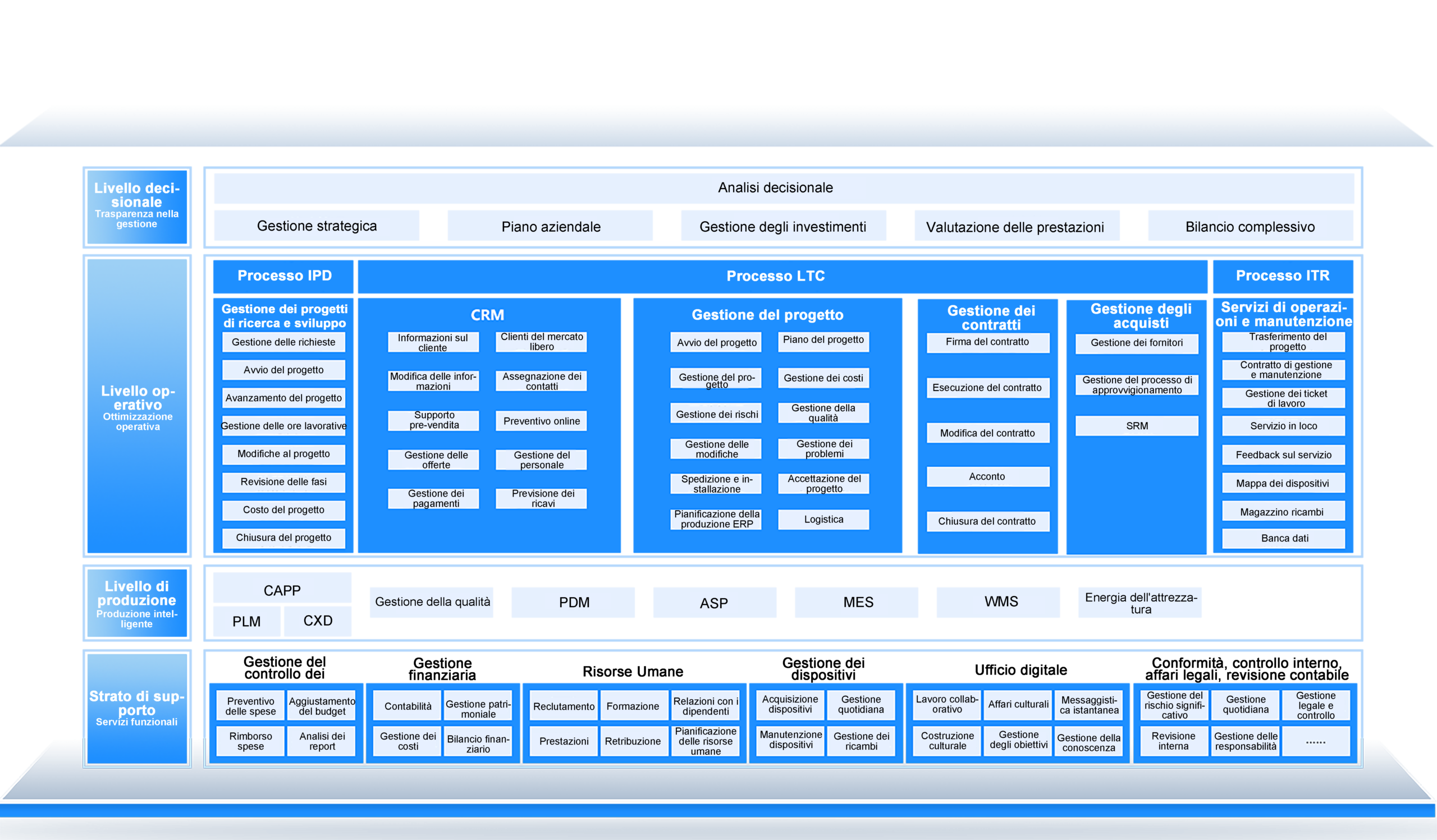 Incentrato sul processo LTC (Lead-to-Cash), focalizzarsi sugli elementi chiave di marketing, gestione dei contratti e gestione degli appalti (o approvvigionamenti) per la realizzazione di una Piattaforma di Gestione Operativa Integrata per l’azienda.